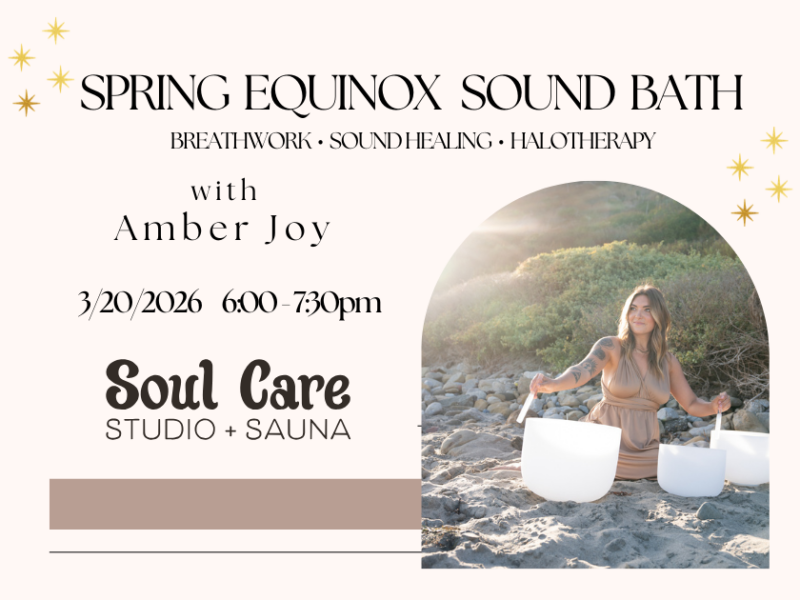 Celebrate the Spring Equinox and invite in the energy of renewal with guided active breathwork and a restorative sound bath led by Amber Joy, followed by halotherapy, a calming salt therapy experience designed to support relaxation, respiratory health, and nervous system balance. Reserve your spot for this small group gathering.